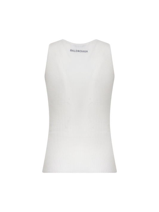 Balenciaga Women White Ribbed Wool Knit Tank Top