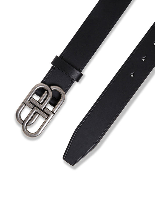 Balenciaga Men Black Leather Belt With Bb Buckle Balenciaga Man