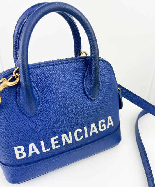 Balenciaga Grained Calfskin S Ville Top Handle Bag Royal Bleu