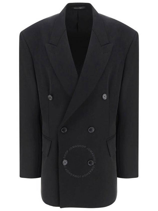 Balenciaga Cinched Double Breasted Wool Jacket Black