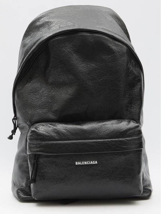Balenciaga Explorer Logo Print Leather Backpack Black