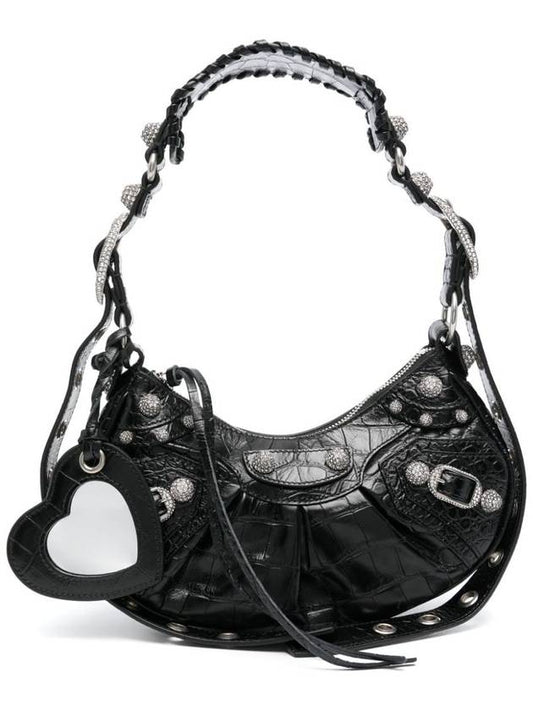 Balenciaga Le Cagole Crocodile Embossed Shoulder Bag Black