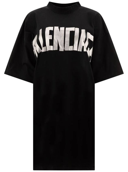 Balenciaga Logo Print T-Shirt Short Dress Black