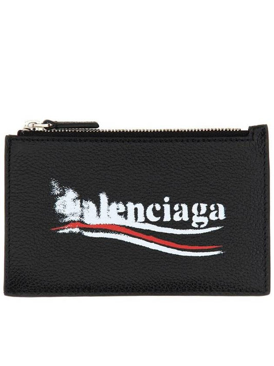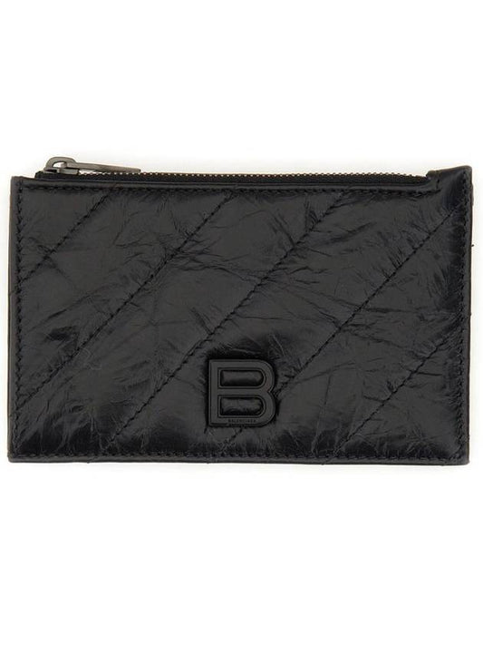 Balenciaga Crush Zipper Leather Card Wallet Black
