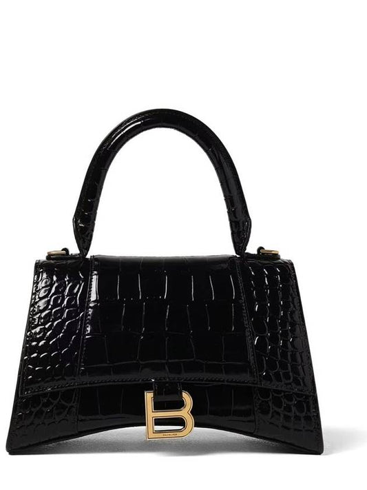 Balenciaga Hourglass Crocodile Emboss Small Tote Bag Black