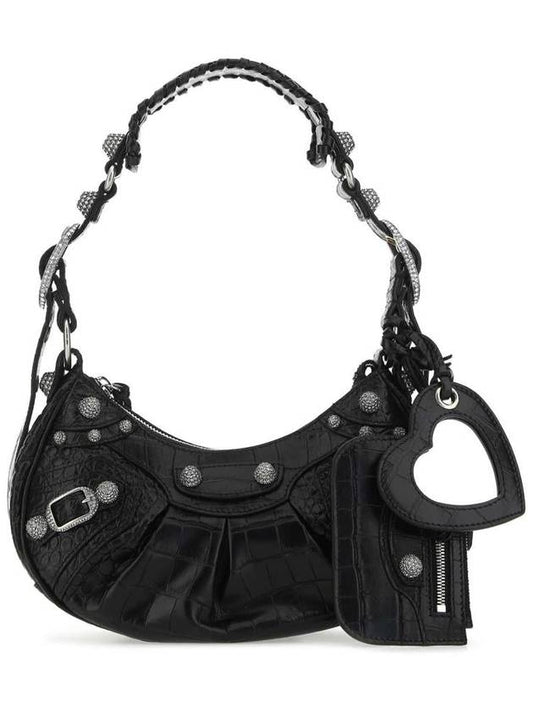 Balenciaga Le Cagole Crocodile Embossed Shoulder Bag Black