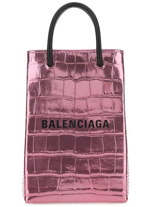 Balenciaga Crocodile Embossed Phone Holder Mini Cross Bag Pink