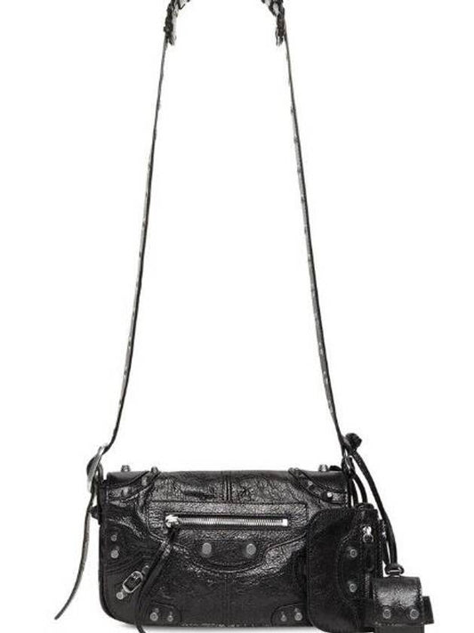 Balenciaga Zipper Stud Arena Lambskin Shoulder Bag Black