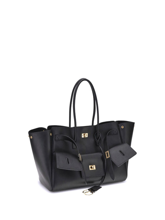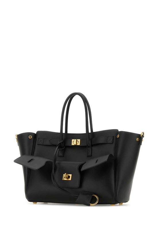 Balenciaga Women Black Leather Small Carry All Bel Air Shopping Bag