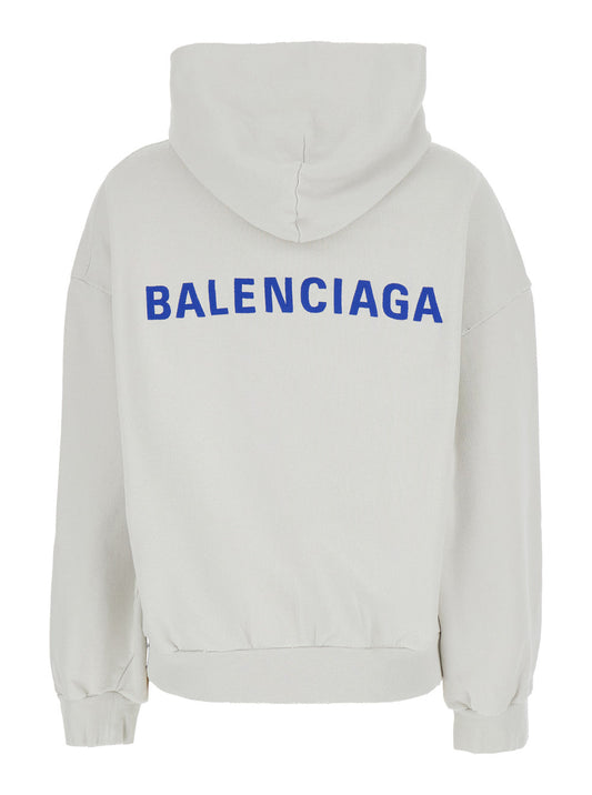 Balenciaga Women White Sweatshirt With Fixed Hood And Logo Lettering On Front And Rear In Cotton Woman