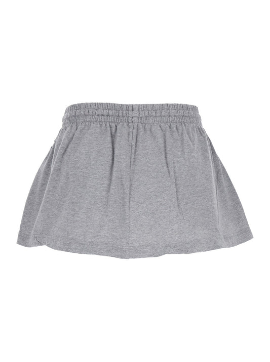 Balenciaga Women Grey Miniskirt With Logo Embroidery On The Front And Elastic Drawstring Waist In Cotton Woman