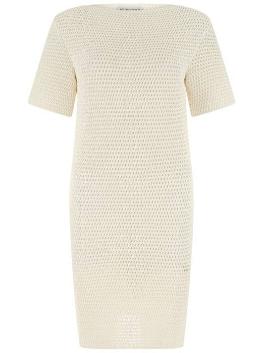 Bottega Veneta Women's Crochet Bag Cutout Short Sleeve Midi Dress White