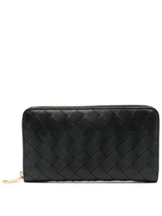 Bottega Veneta Intrecciato Zipper Around Long Wallet Black