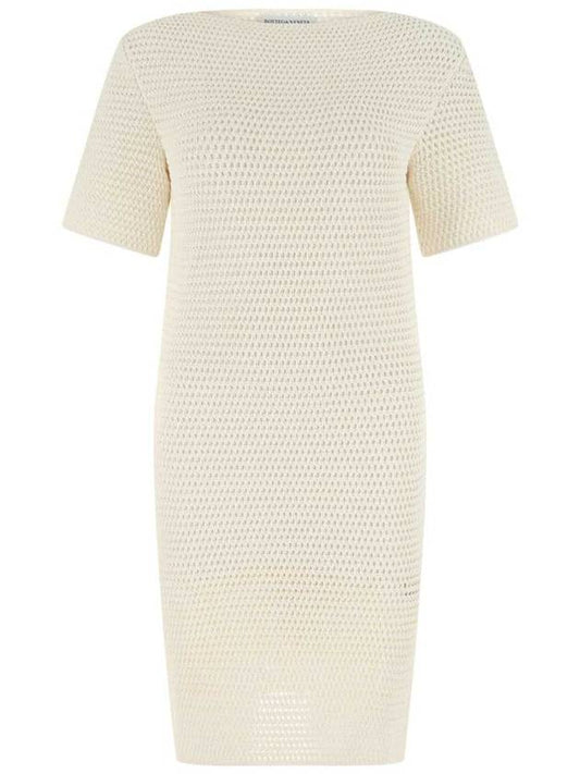 Bottega Veneta Women's Crochet Bag Cutout Short Sleeve Midi Dress White