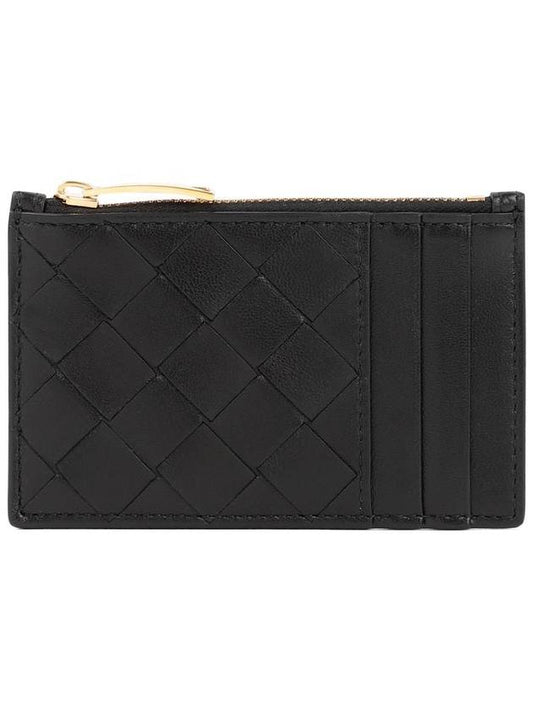 Bottega Veneta Intrecciato Zipper Leather Card Wallet Black