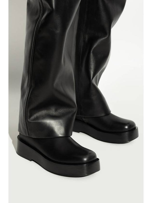 Bottega Veneta Round leather straight pants black