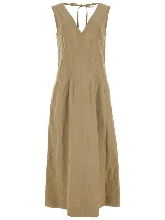 Bottega Veneta V-neck Open Back Maxi Long Dress Beige