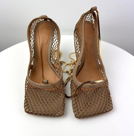 Bottega Veneta Mesh High Heel Sandal in Nude