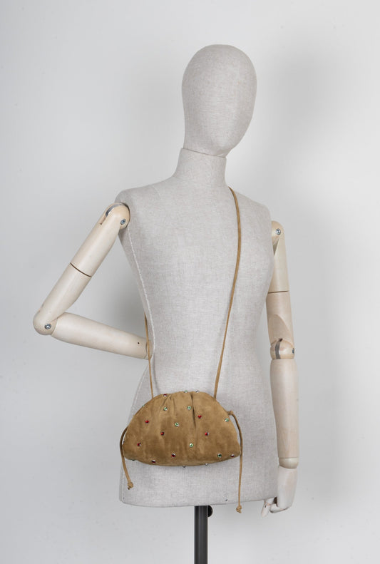BOTTEGA VENETA Mini Pouch Suede Rhinestone Olive