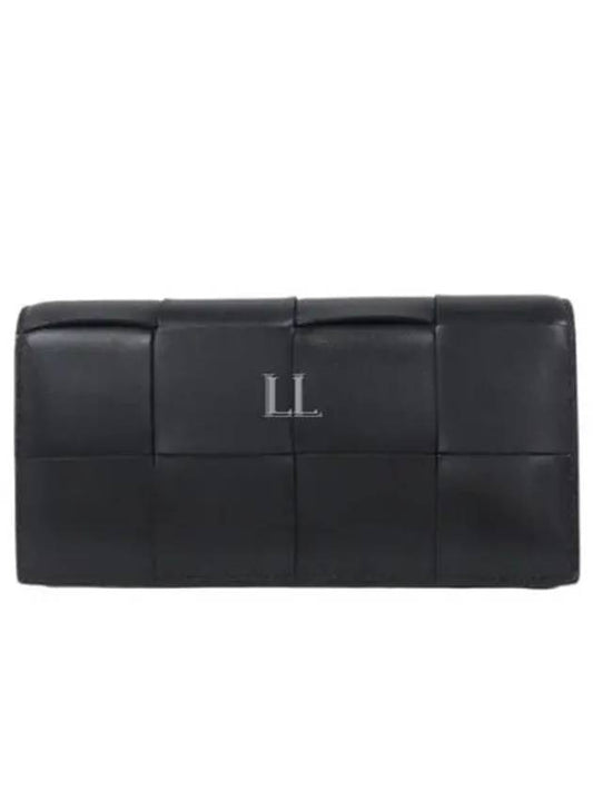 Bottega Veneta Intrecciato Large Flap Long Wallet Black