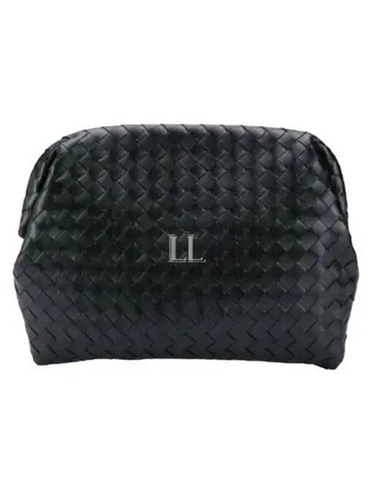 Bottega Veneta Intrecciato Leather Pouch Bag Black