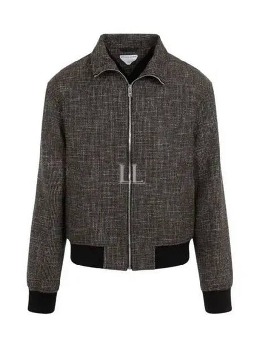Bottega Veneta Pied De Poule Blouson Zip Up Jacket Black Charcoal