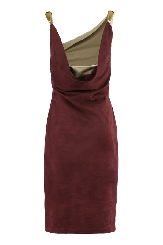 BOTTEGA VENETA Suede Midi-Dress with Gold-Tone Metal Detail