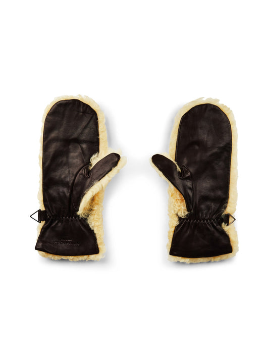 BOTTEGA VENETA Teddy Shearling and Leather Logo Gloves