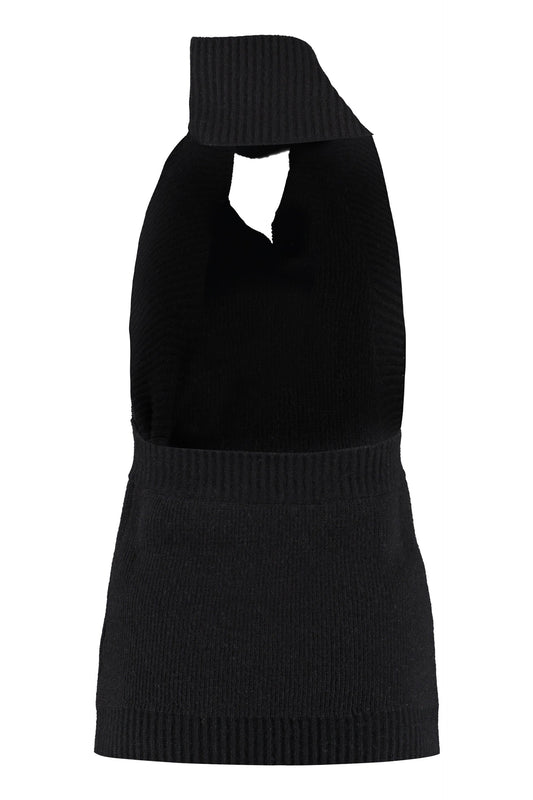 BOTTEGA VENETA One-Shoulder Knit Top with Pussy-Bow Collar