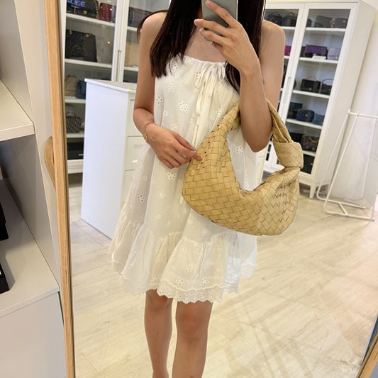 Bottega Veneta Teen (Current Small) Jodie Hobo Bag in Porridge (Light Beige) Intrecciato Lambskin and GHW