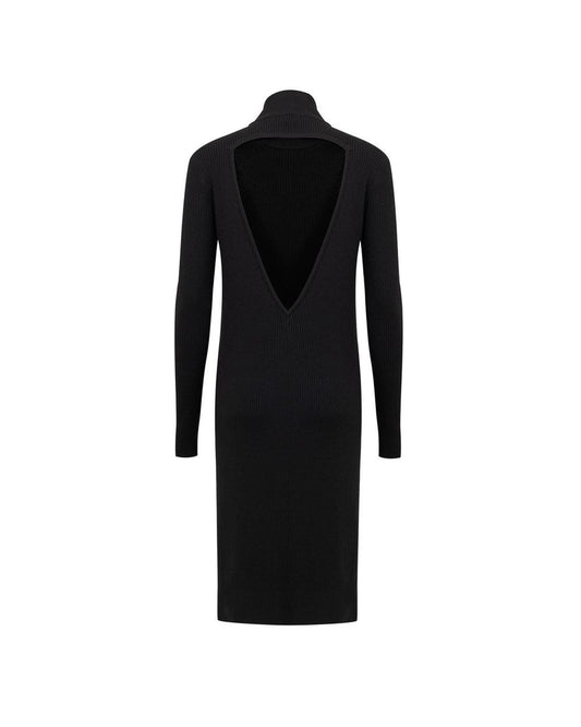 Bottega Veneta Ribbed Knit Midi Mock Neck Dress Women Black Dresses