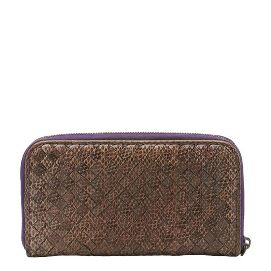 Bottega Veneta Intrecciato Long Zip Wallet in Snakeskin Leather Purple