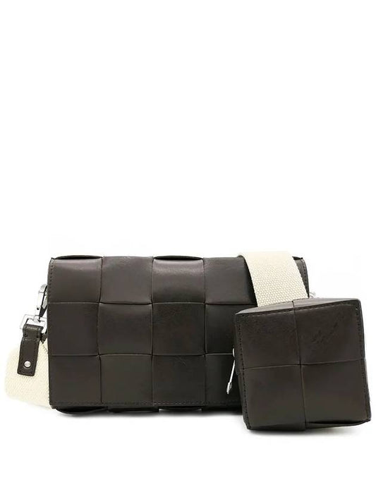 Bottega Veneta Cassette Intrecciato Small Cross Bag Dark Grey