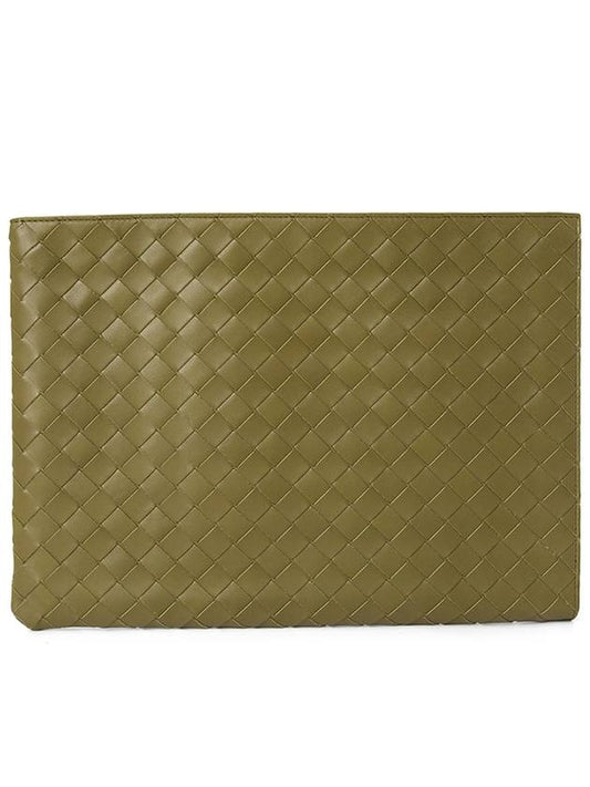 Bottega Veneta Intrecciato Half-Zip Clutch Bag Green