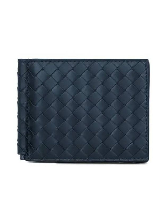 Bottega Veneta Intrecciato Money Clip Card Wallet Navy