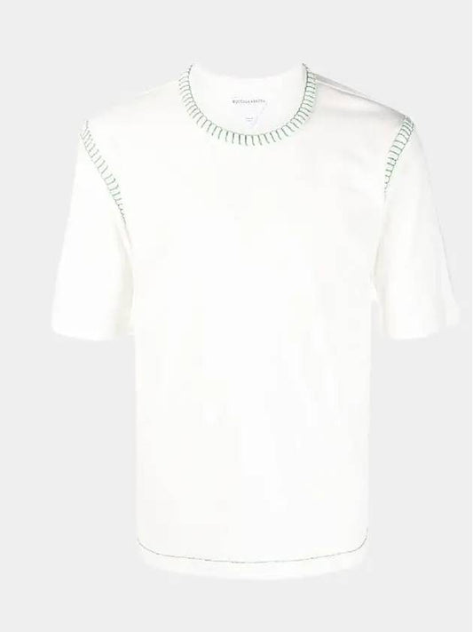 Bottega Veneta Overlock Parakeet Stitch Cotton Short Sleeve T-Shirt White