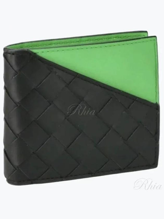 Bottega Veneta Intrecciato Two-Tone Half Wallet Black Green