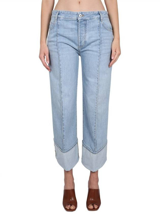Bottega Veneta Turn-Up Hem Curved Light Bleached Straight Jeans Blue