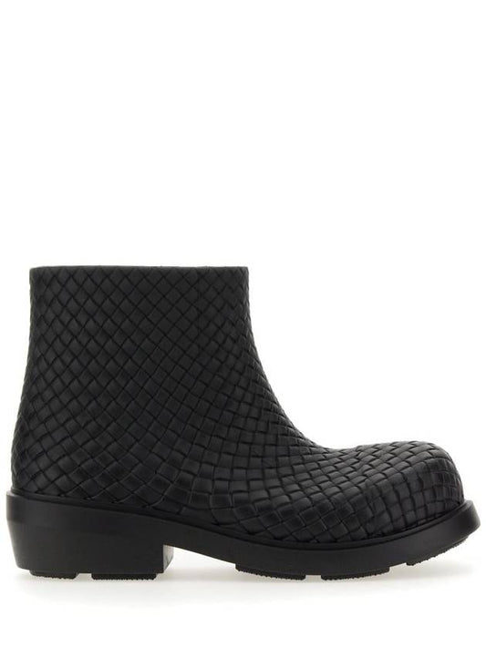 Bottega Veneta Fireman Intrecciato Leather Ankle Boots Black