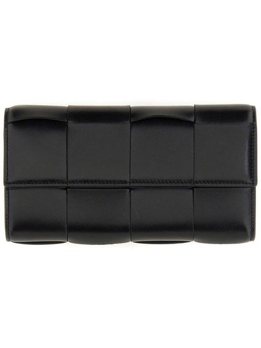 Bottega Veneta Cassette Flap Leather Long Wallet Black