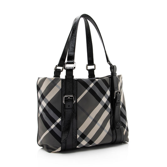 Burberry Nylon Beat Check Lowry Medium Tote (SHF-I5tUwx)