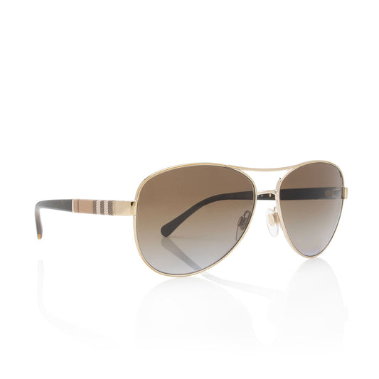 Burberry Polarized Check Aviator Sunglasses (SHF-ZGptFV)