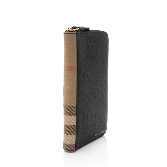 Burberry Calfskin House Check Renfrew Zip Around Wallet (SHF-B5VVSw)