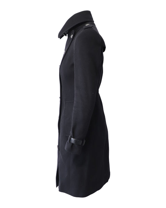 Burberry Double-Breasted Trench Coat with Leather Detail in Black Wool