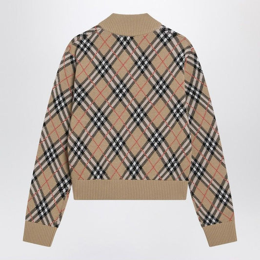 BURBERRY Check Wool Zip-Up Cardigan for Women