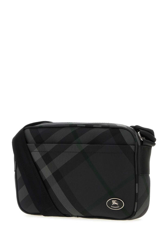 BURBERRY Embroidered Canvas Grid Slim Crossbody Handbag