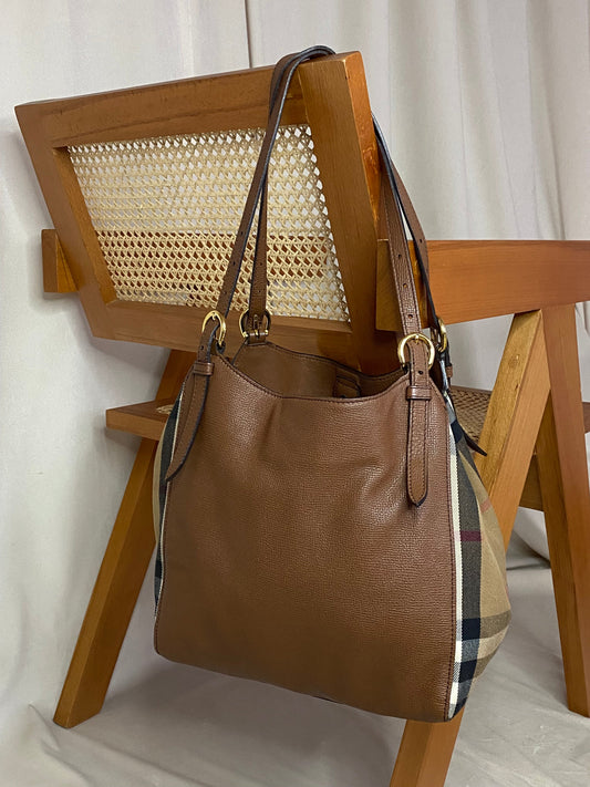 Burberry Brown Bridle House Check Bowling Tote Bag
