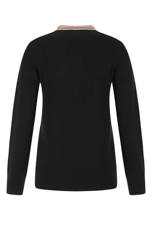 Burberry Women Black Wool Blend Wide-Leg Pant