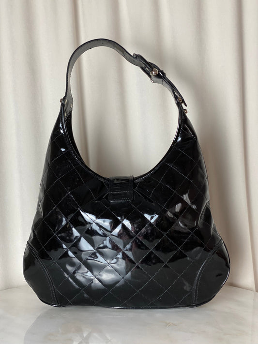 Burberry Black Smoked Check Brooklyn Hobo Trench Bag