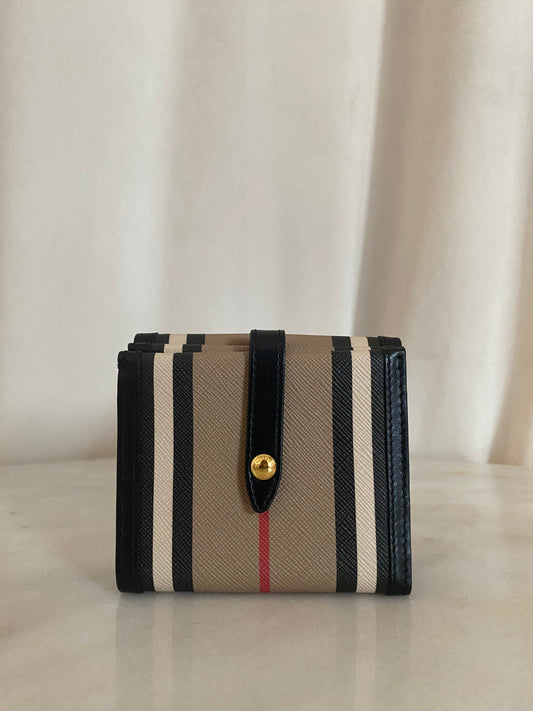Burberry Bicolor Luna Icon Stripe Compact Bi-Fold Wallet